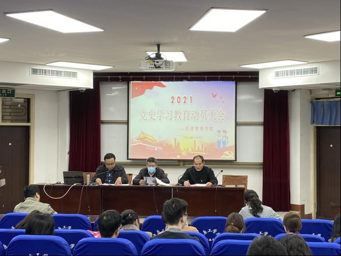在4号楼311学术报告厅召开党史学习教育动员会。学院领导班子成员、全体教职工、党员学生代表参加会议,校党史学习教育第五指导组成员、纪委副书记李惠杰莅临指导。会议由学院党委书记张文勇主持。