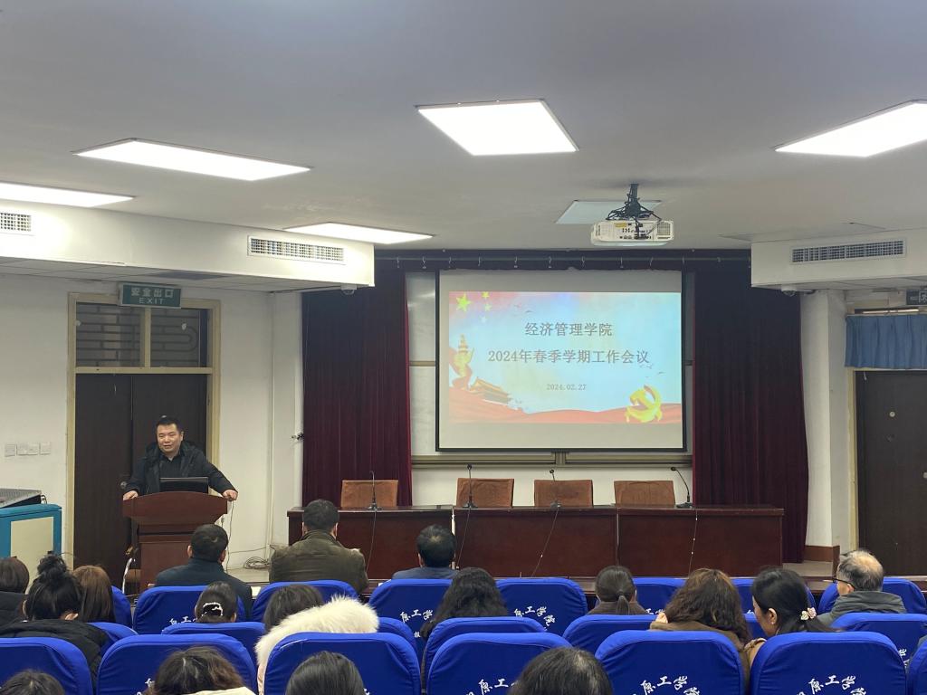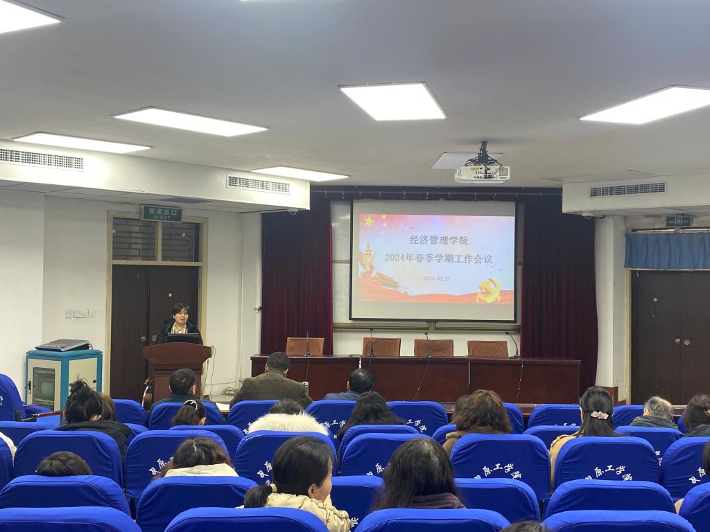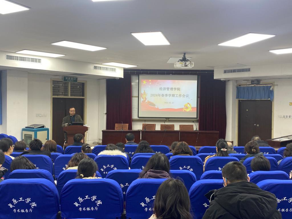 在4号楼311学术报告厅召开春季学期工作会议,传达学校2024年工作计划,部署新学期工作,为筹建河南电子科技大学进行精神动员。学院全体教职工参加会议,会议由学院党委书记李向东主持。