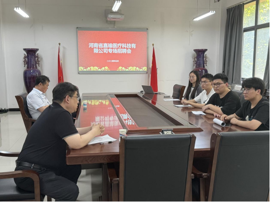 召开专场招聘会,河南省嘉瑜医疗科技有限公司经理刘成福现场与色中色