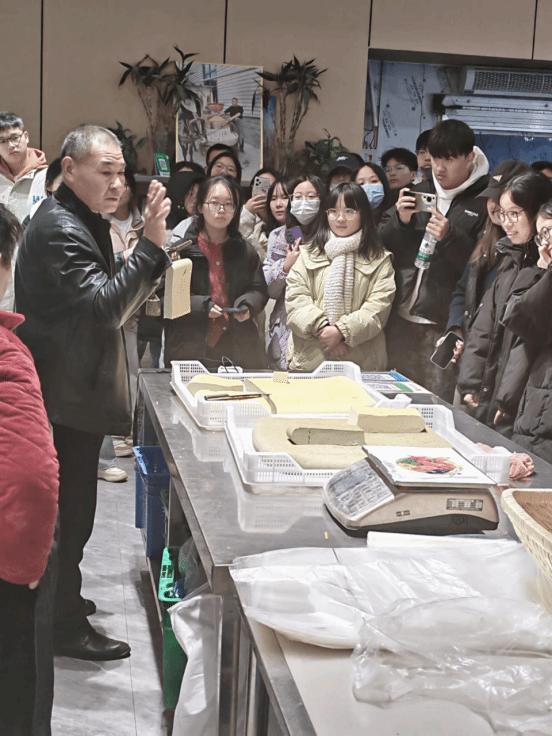 在洧川豆腐工坊,师生们参观了豆腐加工制作的非遗文化展览,体验了豆腐传统手工艺的制作过程。河南省非物质文化遗产渭川豆腐传承人现场生动地讲解了几代人如何把一粒粒黄豆变成香喷喷、可用绳子拎着带走的豆腐,如何从一个小小的手工作坊变成了现在的非物质文化遗产传承示范工厂的奋斗史。