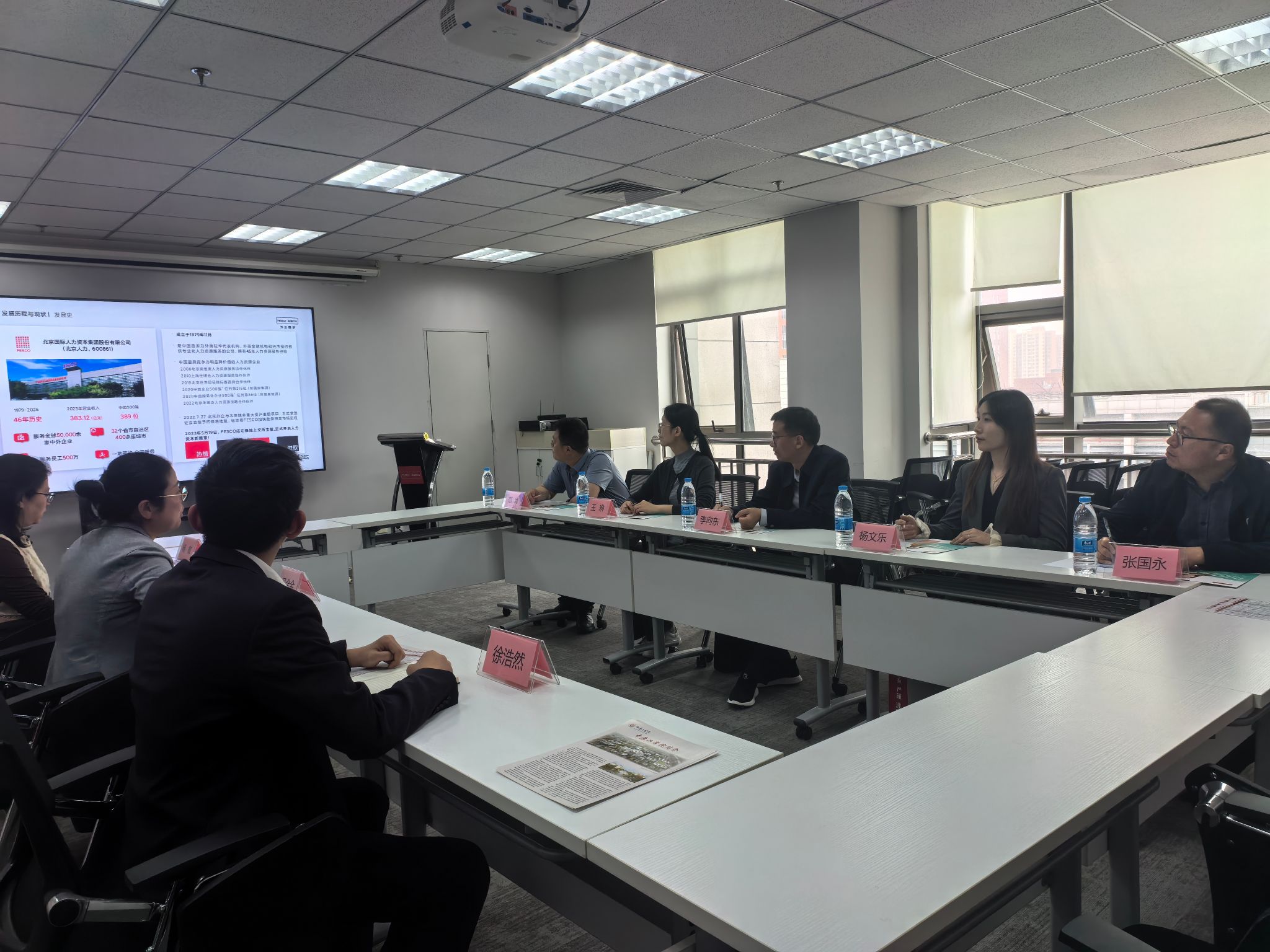 1996级校友吴娜及人力资源部经理陈振进行座谈交流。吴娜对母校老师来访表示热烈欢迎,介绍了公司发展历程、业务布局及人才需求。双方围绕毕业生就业和人才招聘等进行深入交流,会后,李向东一行参观了公司色中色展馆,感受企业“精诚善建、卓越共进”的发展理念。