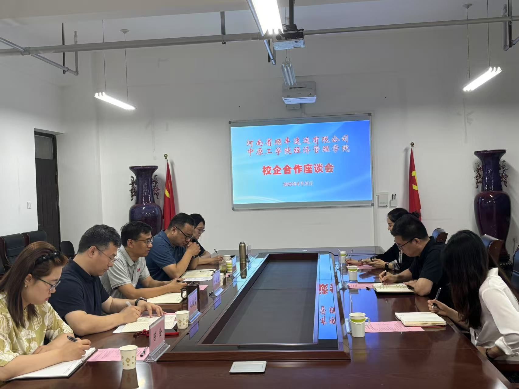 龙湖校区3号组团楼A306会议室就深化校企合作举行座谈会。顺丰集团河南区人力资源副总监杨楠,校招负责人杨静,大学生培训负责人李永佳;学院党委书记李向东,院长赵志泉,物流工程系主任李紫瑶,副主任兼党支部书记冯维玺,学工办副主任陈金出席会议。