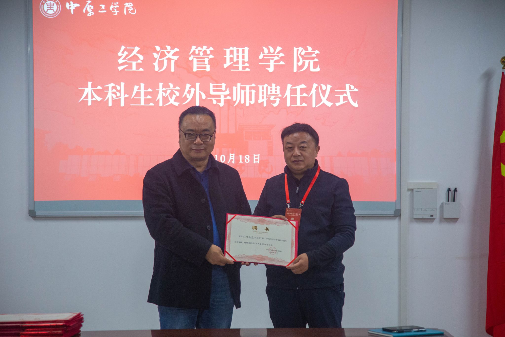 本科生校外导师”,赵志泉签订协议书并为受聘校友颁发聘书。