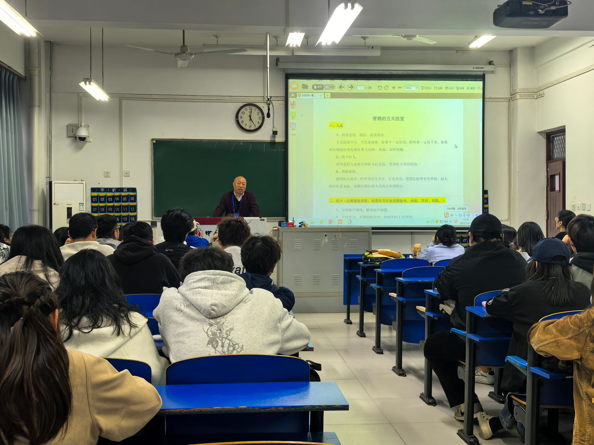 田红战根据多年经验分享营销“五大法宝”:人品是根基,需坚守商业道德、秉持利他思维;实力是保障,要在技术、交付等全流程展现优势;利益共享是关键,要精准洞察并满足客户物质与精神需求;适度营销是途径,借助网络、向上社交等拓展业务,同时精准识别客户;学习是动力,通过持续学习提升认知,为营销各环节赋能。这些法宝为学生未来的职业规划提供了清晰指引。