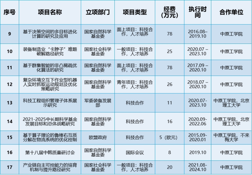 中心承担的部分合作项目