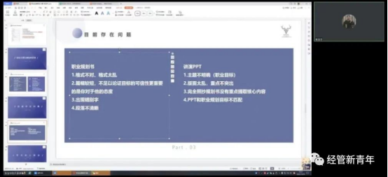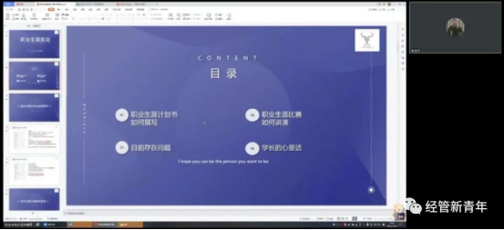 在腾讯会议平台举办“雅迪杯”大学生职业生涯规划大赛赛前培训会。邀请18级市场营销专业毕业生张宝宇为色中色