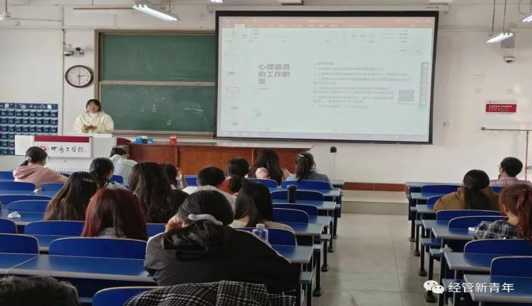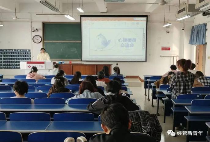 在3号教学楼305教室举行了心理委员工作交流会。金融221班的朱玉莹同学为主讲人,经管学院各班级心理委员参会。