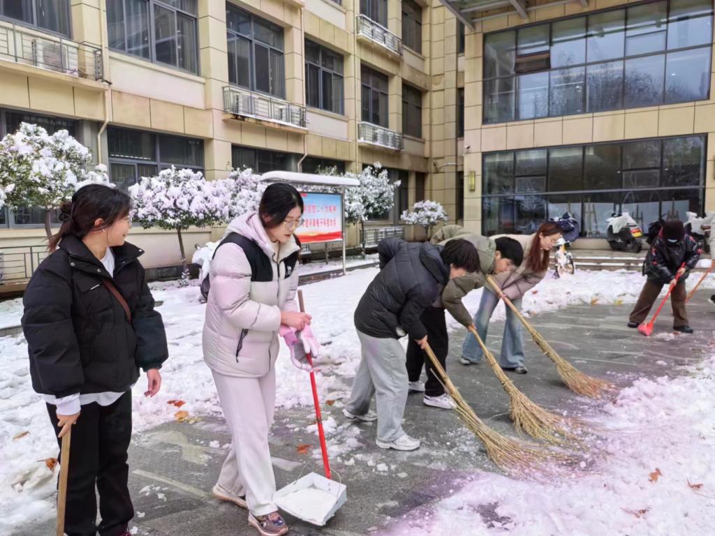 第一、第二、第四学生党支部党员用实际行动发挥了先锋模范作用,为校园师生创造了一个良好的出行环境,也为寒冷的冬日带来了一丝暖意。江南江北雪漫漫,在火热的扫雪活动中,党旗在寒冬也显得格外热烈。(通讯员 冯诗媛)