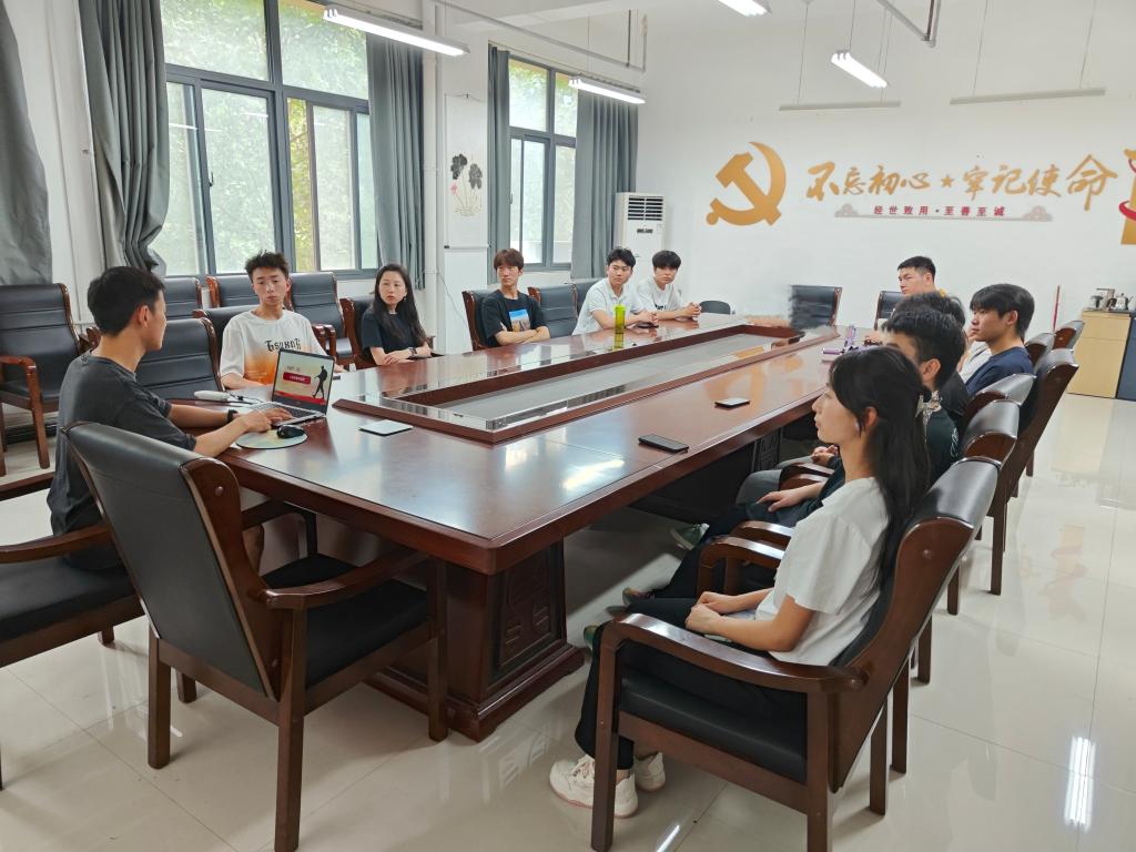 两位退伍学生22级研究生王樑超、兼职辅导员刘俊欢及学院有意向入伍的20余名学生参加会议。