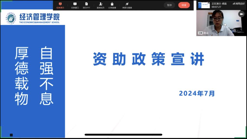 于线上召开2024年两节课资助政策宣讲会。本次会议由学工办副主任陈金主持,色中色