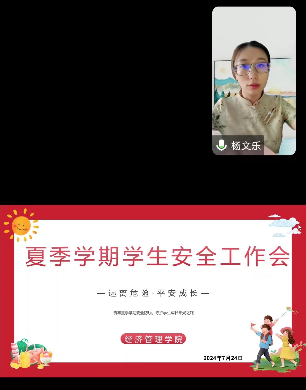 学生工作办公室主任杨文乐对优化夏季学期学生教育管理服务工作机制、充分发挥网格化管理体系作用,调动网格员、班团干部等同学的主观能动性、持续落实晚查寝、请销假制度等方面做了详细汇报。