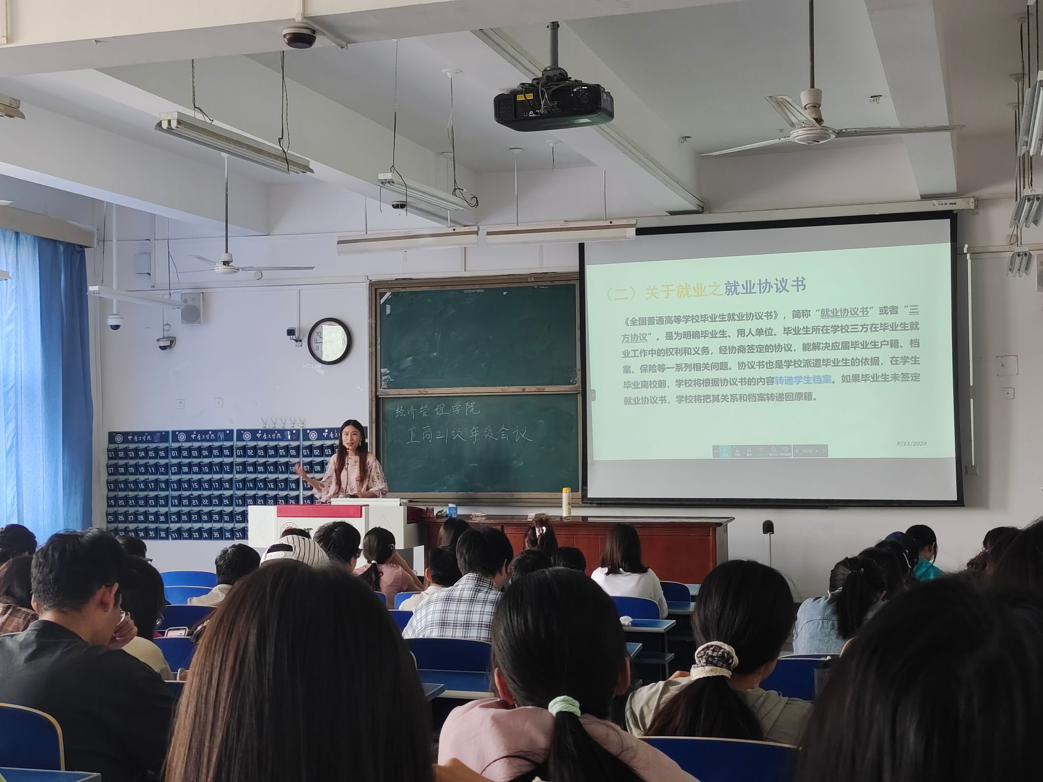 于2024年9月,分批次为21级毕业生召开年级大会。色中色