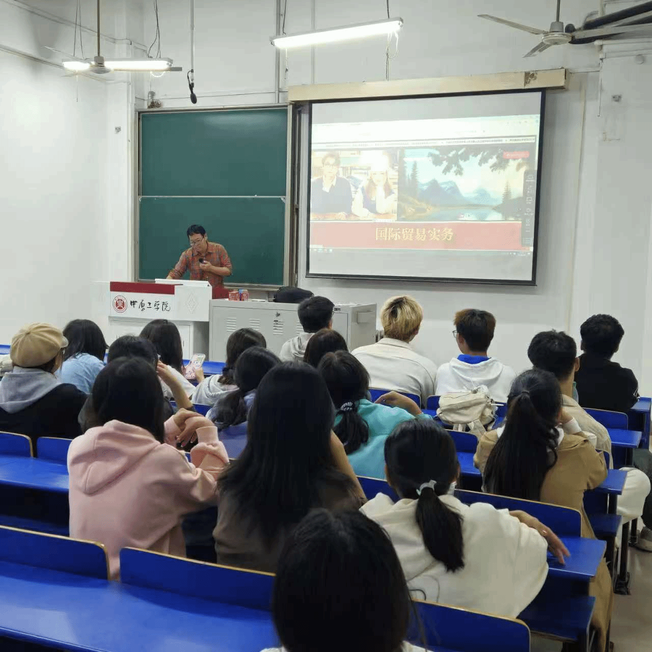 历史沿革、未来规划作了具体讲述。随后,对国际经济与贸易系的建设和发展概况做了详细讲解,从师资力量到专业课程设置,从就业方向到考研考证情况,郭老师结合往年数据,向同学们提出了一些宝贵意见,为同学们指明了学习方向。最后,郭老师就大学学习生活安排等方向做出指导,勉励同学们刻苦学习,不负青春,鼓励同学们开拓思维,积极生活。