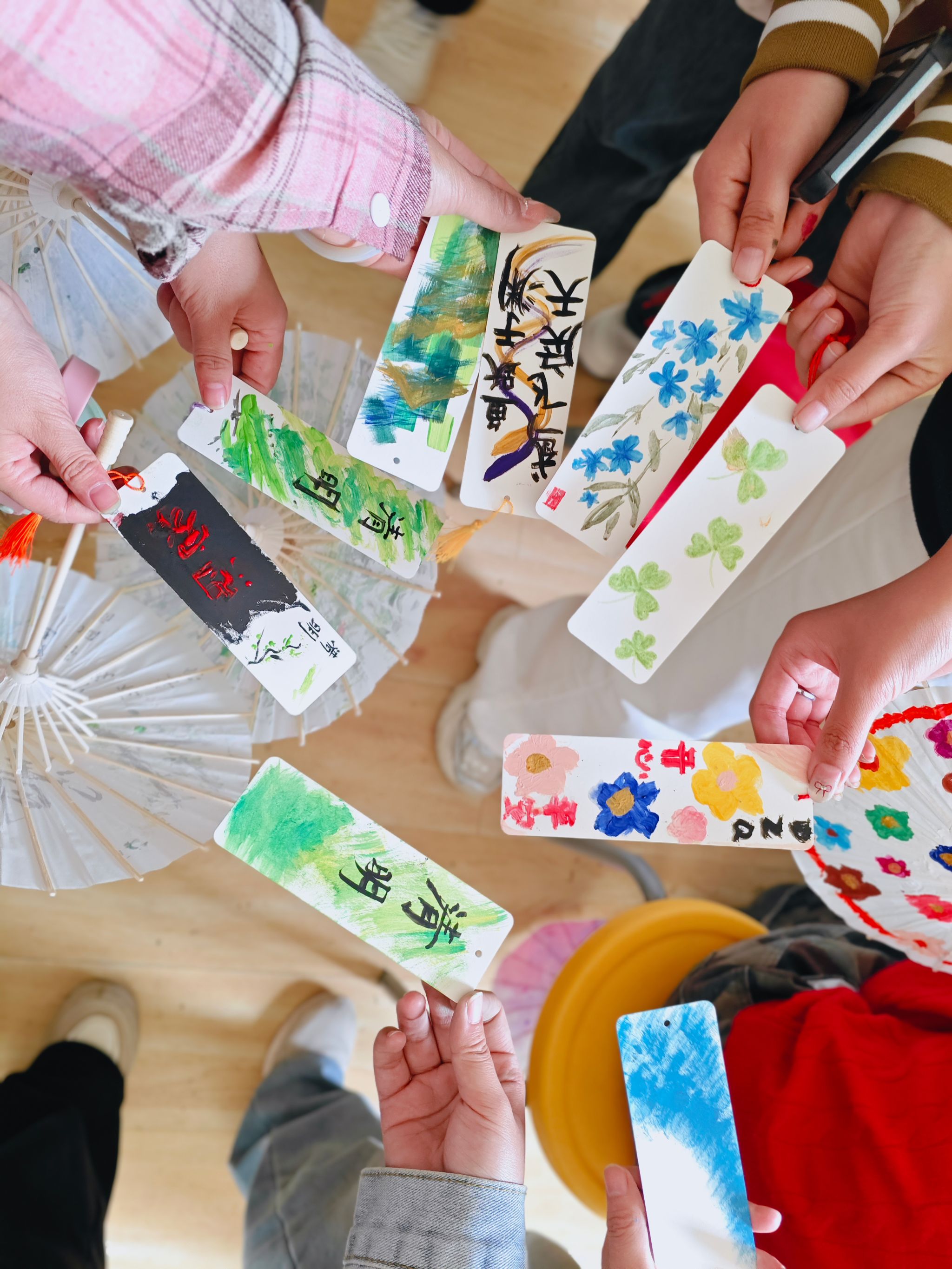 撑起一把油纸伞,仿佛走进了诗意的清明画卷。活动为大家准备了空白油纸伞、颜料和画笔,同学们尽情发挥创造力,在伞面上绘制富有独特创意的图案,填写优美的诗句。当一把把独一无二的油纸伞在手中诞生,仿佛也将清明的诗意与浪漫定格。