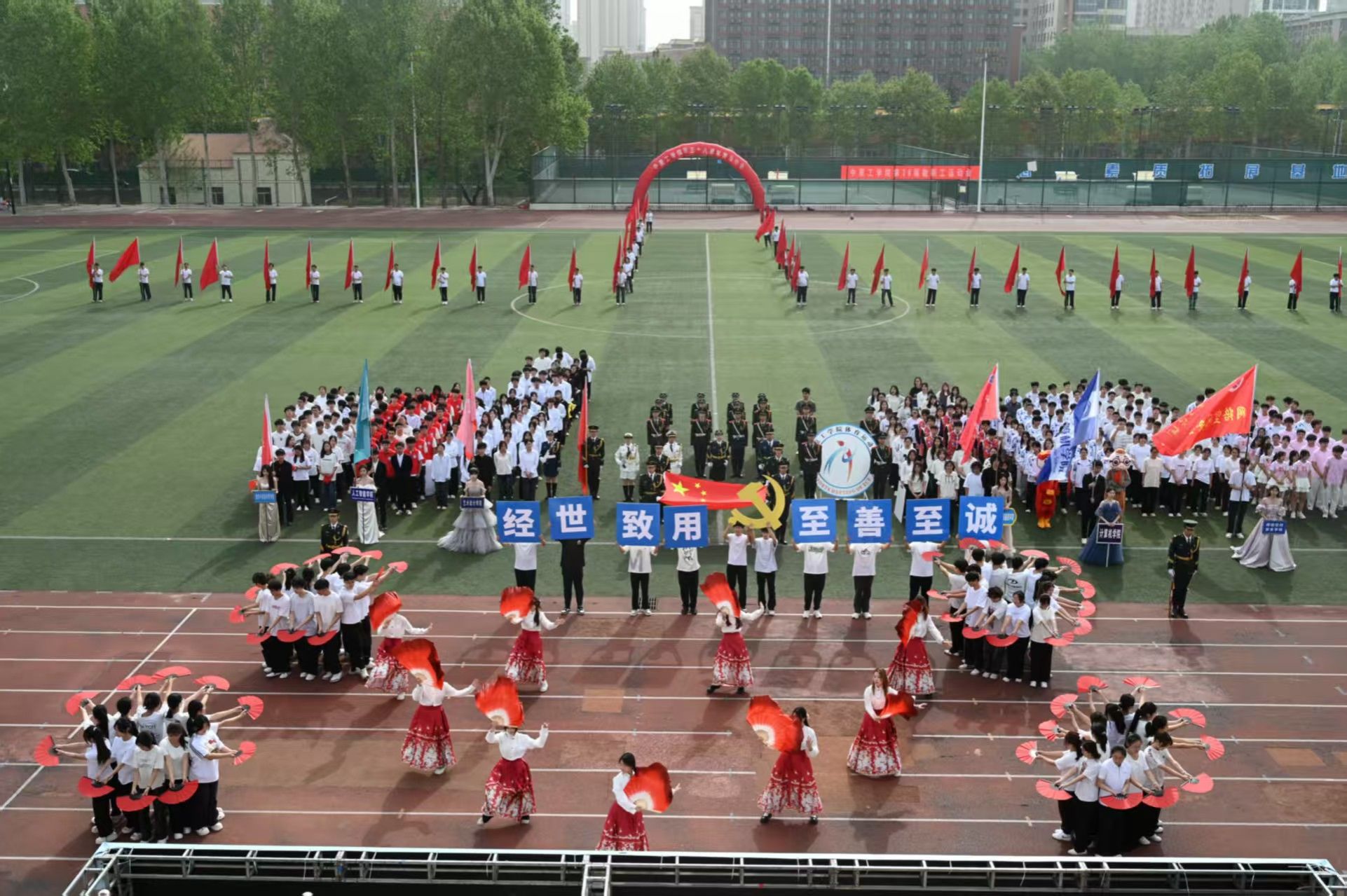 方阵队员精神抖擞,用舞蹈诠释着对祖国的大爱,用嘹亮的声音宣扬着“经世致用,至善至诚”的院训,用整齐的步伐践行着“更快、更高、更强、更团结”的体育精神。