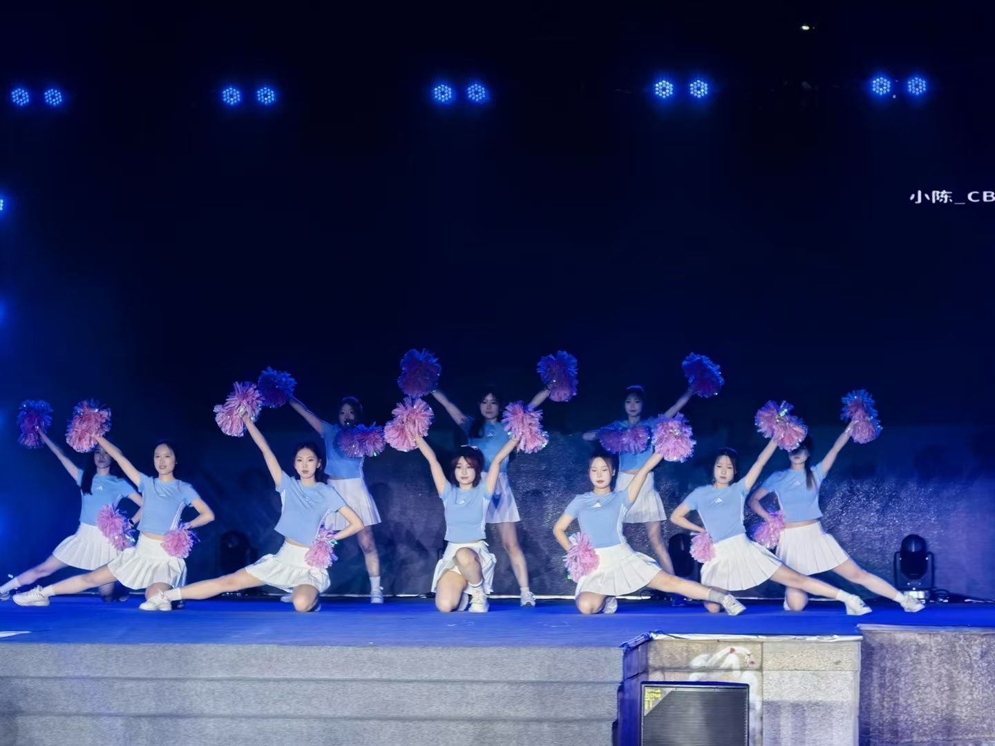 龙湖校区紫薇广场上灯光璀璨、热闹非凡,第十六届“青春•阳光•健康”体育文化节暨健身操舞 健身健美大赛在此盛大举行。