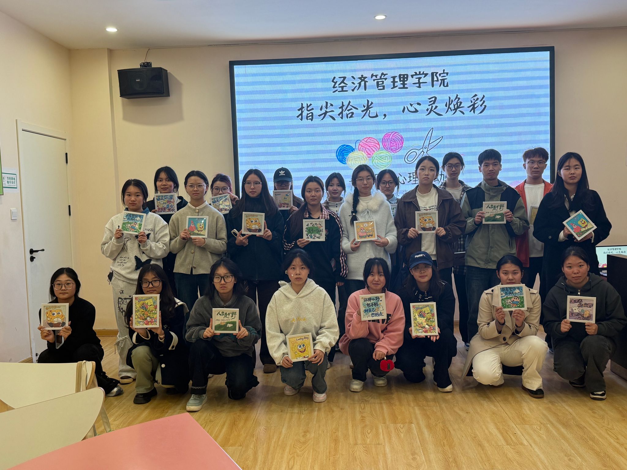 创作环节结束后,大家踊跃展示个人创作成果,分享作品的构思理念、创作心得与感悟,深入交流日常心理调节的实用技巧与实践经验。通过深度互动与真诚分享,同学们进一步深化了彼此的沟通与理解,有效疏解了学业与生活中的心理压力,切实达成了放松身心、凝聚情感的活动目标 。