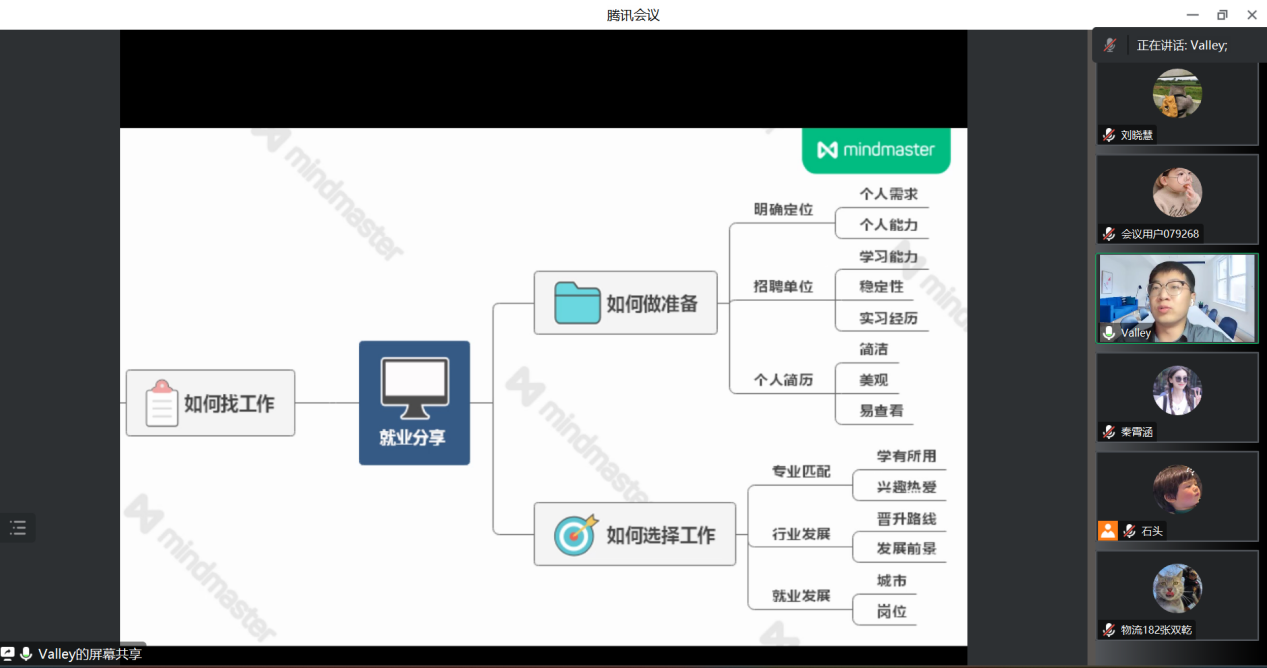 于线上举行了“2023届毕业生就业经验分享会”。本次活动邀请了2022届优秀毕业生孙佰灵、张双乾、翁梦婷、任子厚以及郑州大学2017届毕业生中科院在读博士黄亚峰,从简历制作,求职途径,就业经验,求职感悟等方面展开分享。毕业生辅导员郭政良老师主持此次会议,一百余名来自不同专业毕业生参与本次活动。