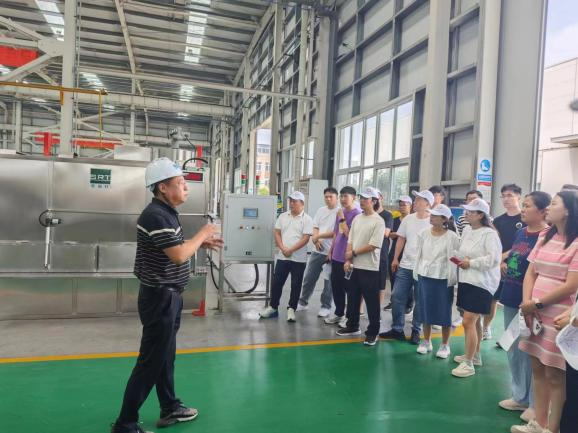 师生一行首先来到了开封迪尔空分实业有限公司,公司负责人详细讲解了迪尔空分的发展历史、制造工艺以及空分制造产业链上游环节的技术研发、下游环节的工业气体应用等内容。随后,企业管理者带领同学们参观了企业的生产设备和制造车间,迪尔空分打破传统制造车间与现代化生产的壁垒,高度智能化、节能型设备生产线成为核心竞争优势。通过聆听讲解以及与企业高管的深入交流,学生们不仅获得了宝贵的行业经验和职业发展建议,还对色中色的内涵和价值有了更深刻的认识。